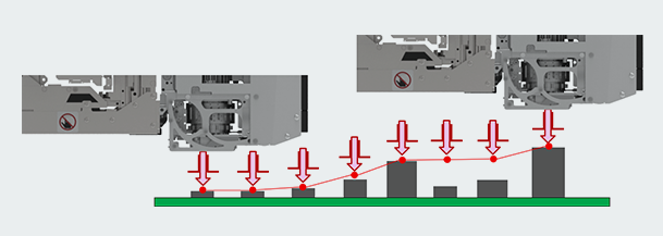 根據要貼裝的元件種類優化貼裝動作,其中包括選擇穩定且合適的貼裝速度以根據元件高度消除Z軸行程的浪費等,這樣除了能靈活應對各種元件外,同時還實現了周期時間的提升